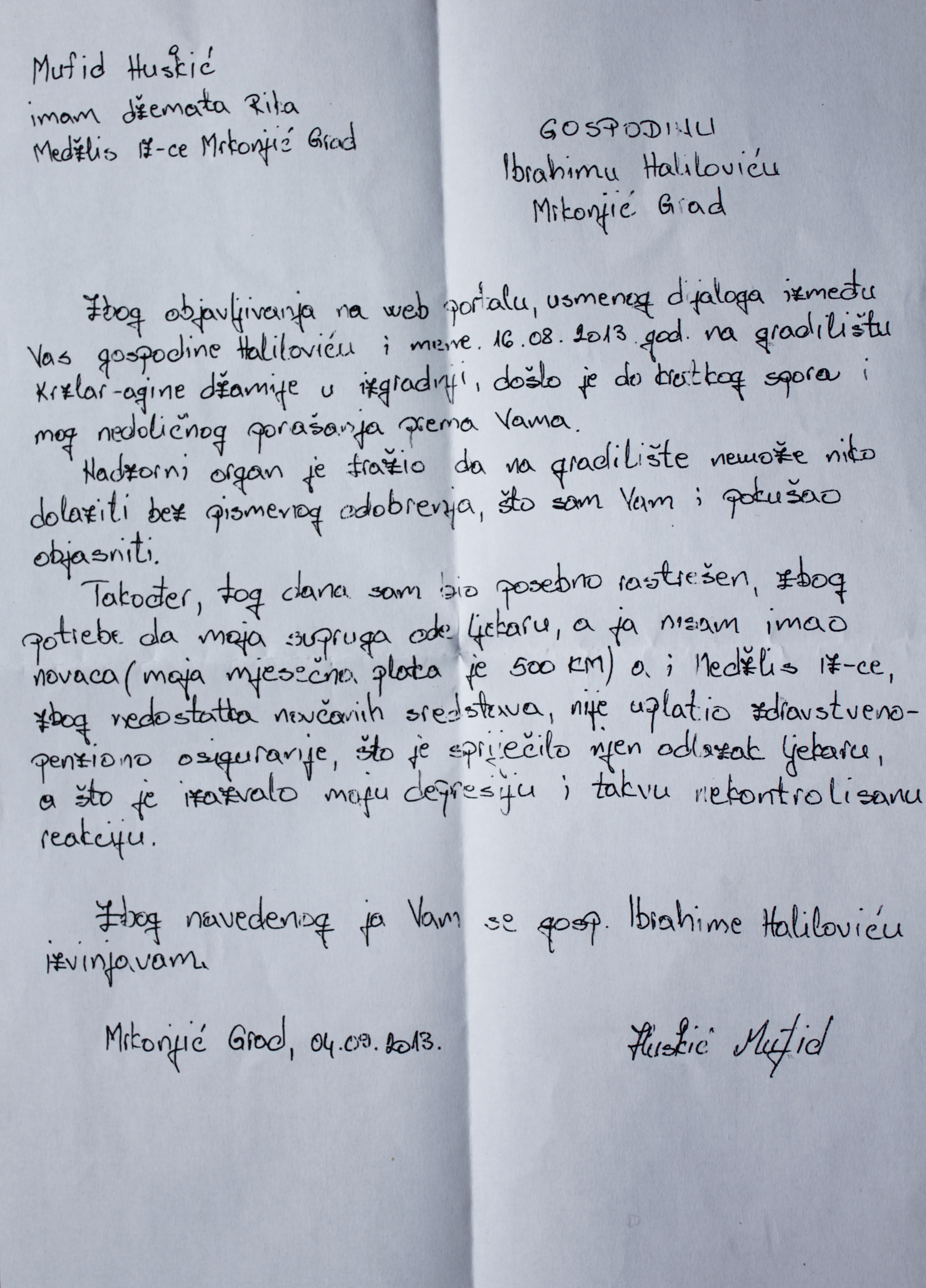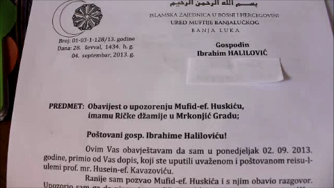 Pismo Mufida Huskića, imama džemata Rika – Mrkonjić-Grad