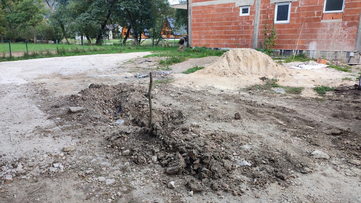 Umjesto zemljom koju su kamioni razrovali pri oktetanju na nsšem posjedu, izrovani dio su zasuli pržinom.