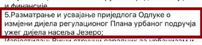 Po kojem zakonu je moguće održavanje Sjednice SO-e Jezero oko sedmicu dana pred izbornu šutnju sa dnevnim redom usvajanja odluke o izmjeni ionako nevažećeg Regulacionog plana užeg dijela naselja Jezero!