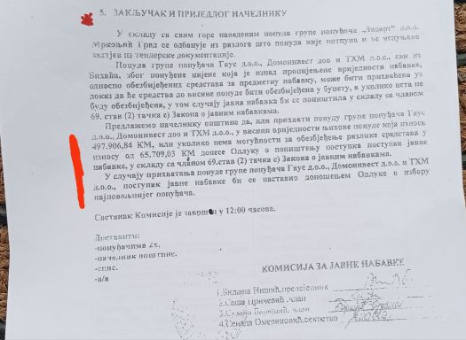 Odabran je skuplji izvođačmogućnost za obazbjeđenje razlike sredstava u iznosu 65.709,03 KM donese odluku o poništenju postupka javne nabavke, u skladu sa članom 69. stav (2) Odabran je skuplji izvođač. Zašto? Zato istražni ogani trebaju slijediti trag novca koji je namiren iz (siromašnog) budđeta Jezera. Zašto?
